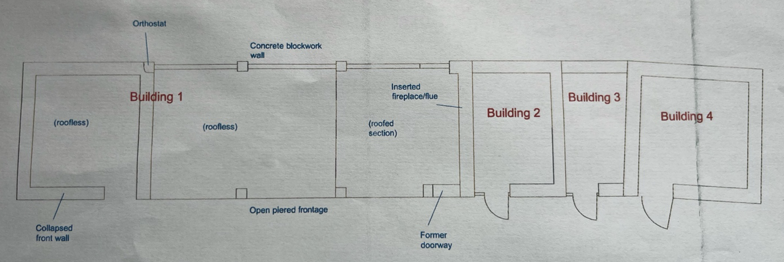 There is no farmhouse that relates to the outbuildings, but an early and mid-19th century row of cottages (now two houses) is likely to have been the domestic heart of the settlement.